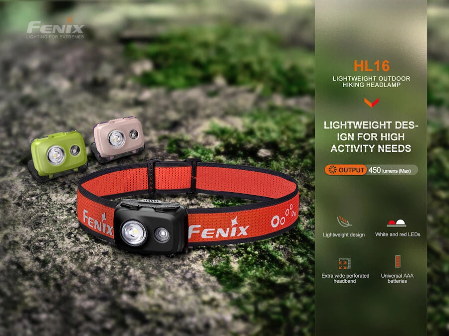 Fenix HL16 is a lightweight, 450 lumen outdoor headlamp with a 104m beam distance. This model is ideal for hiking – running – climbing – trekking and camping.