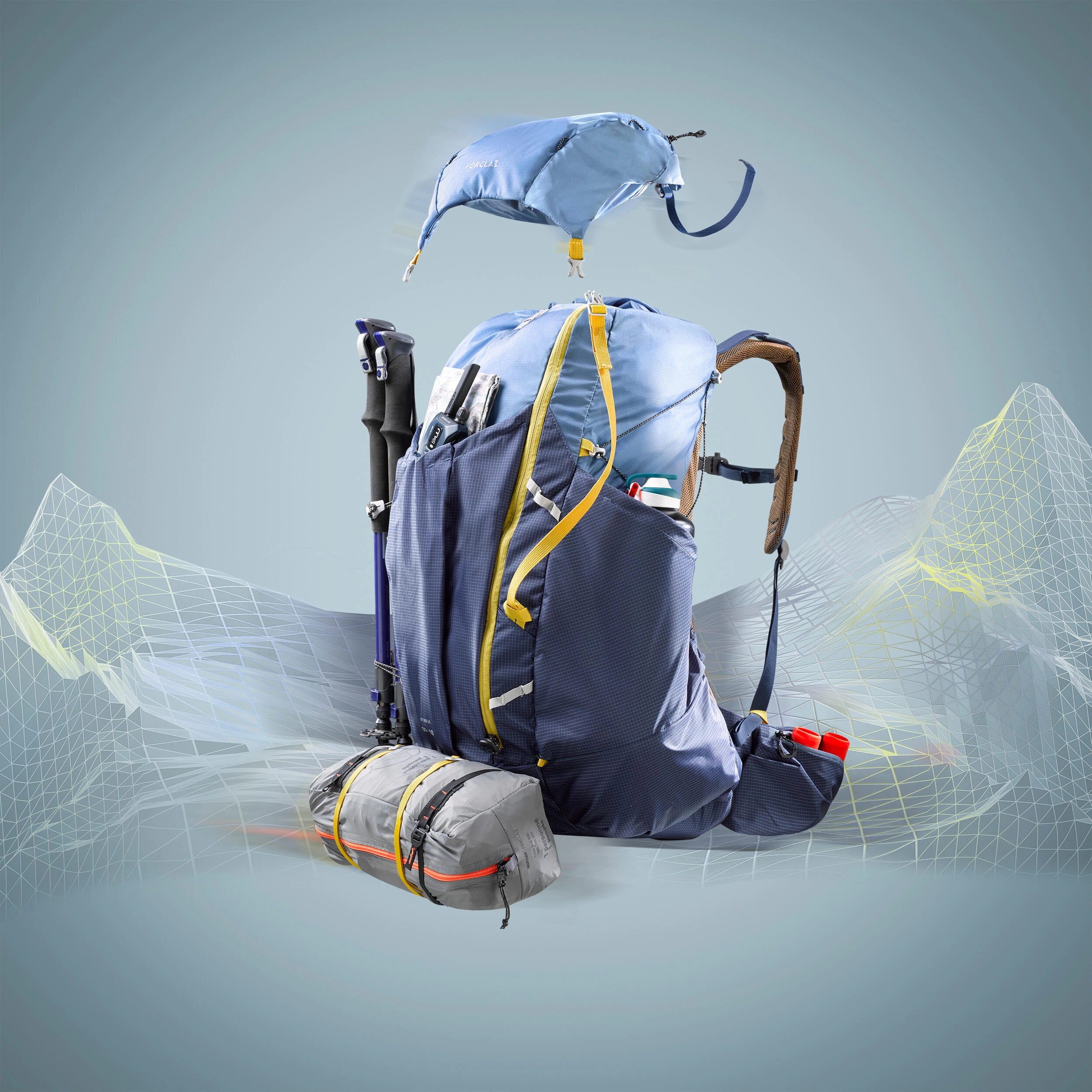 FORCLAZ designed this ultralight & robust bag for demanding users looking for performance. Ideal for completing 2 stages of a long-distance hiking trail in 1 day.Thanks to the design choices, FORCLAZ reduced the weight of this bag to just 1.3 kg without compromising on durability. The bag can be tailored to your needs thanks to the multi-purpose straps.