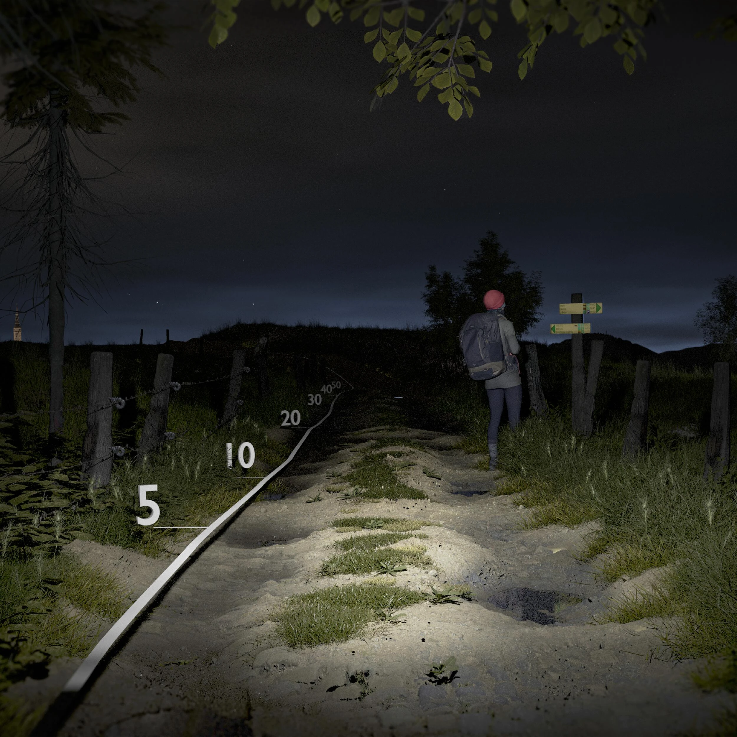 – Medium mode (80 lm) for walking on tracks or forest trails
